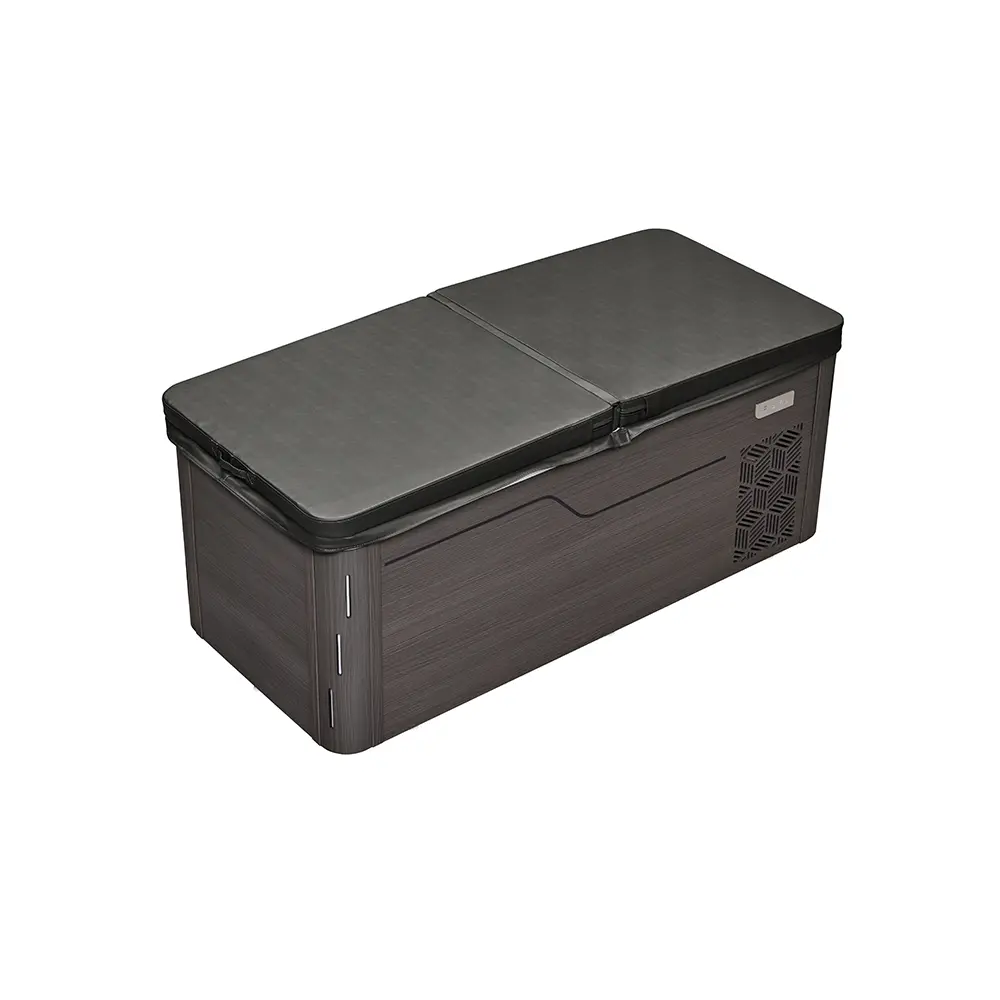 Корпус купели оснащен качественной PU‑изоляцией, которая минимизирует теплопотери и повышает КПД системы охлаждения. Общее энергопотребление составляет 0,85 кВт, что позволяет подключать оборудование к стандартной однофазной электросети. В базовый комплект включены утепленная спа‑крышка и удобная дренажная система, которые упрощают эксплуатацию и помогают сохранять температуру воды между процедурами.